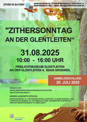 Als Fazit bleibt festzustellen, dass die Zither immer noch die Menschen zu faszinieren vermag und Veranstaltungen, wie der Zithersonntag an der Glentleiten, dazu beitragen, die Zither im Bewusstsein der Musikfreunde lebendig zu erhalten. Es liegt aber in erster Linie an uns Aktiven, immer wieder mit unserem Instrument die Öffentlichkeit auf allen erdenklichen Wegen zu suchen.